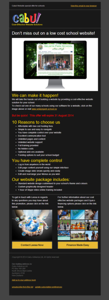 Also, if you purchase a website package with us, we can include an “add to newsletter form” on your site, enabling customers to join your client database, and enlarge your emailing list.